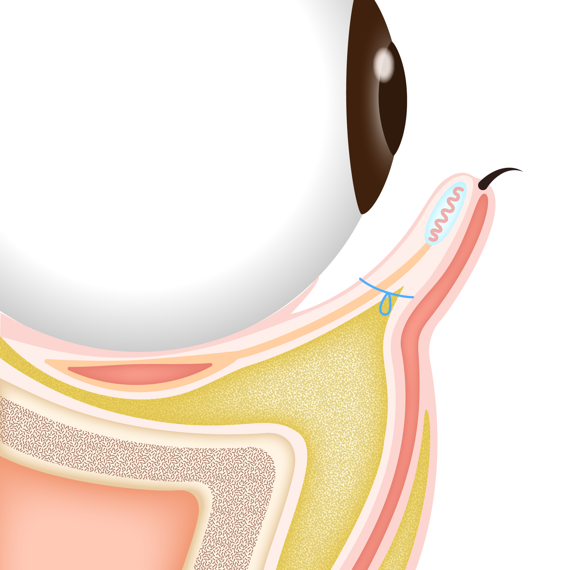 下まぶたの裏側を小さく切開し、クマやたるみの原因となる眼窩脂肪を取り除きます。