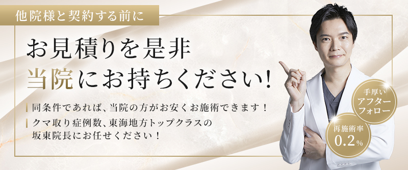 他院様のお見積りをご持参いただけますと、できる限りご配慮いたしますので是非、当院でもカウンセリングをお受けいただけますと幸いです。