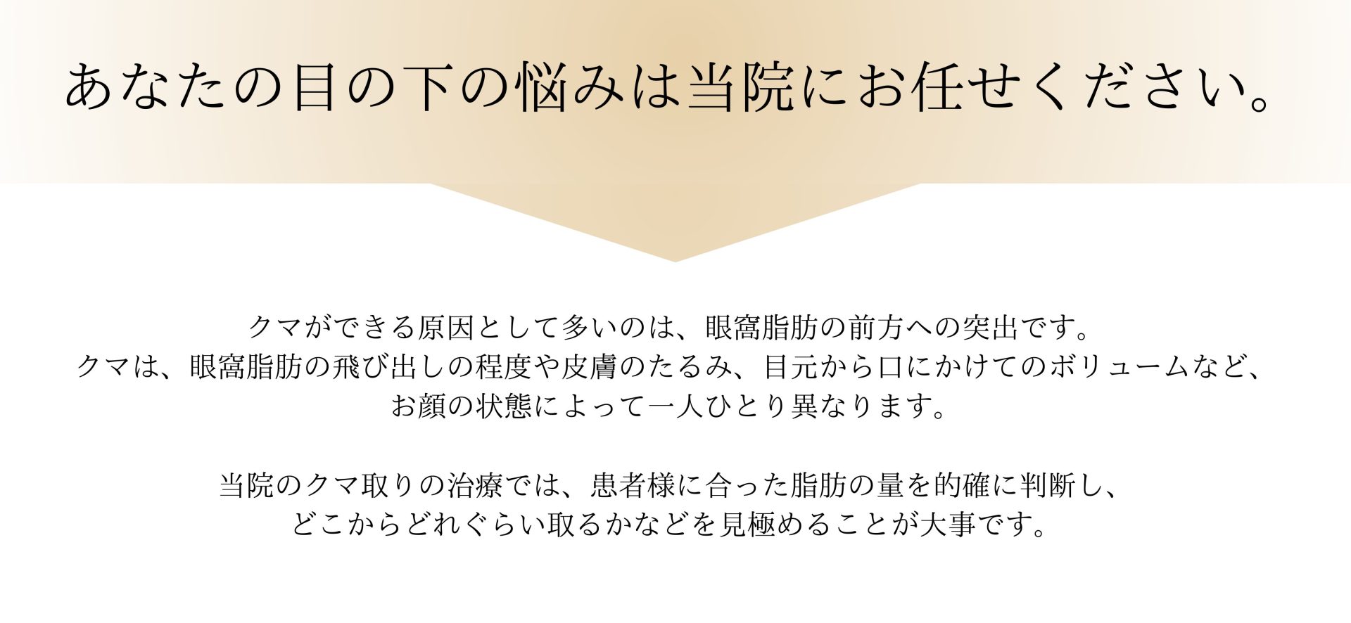 クマが気になったら、早めに治療を受けていただくことをおすすめします。